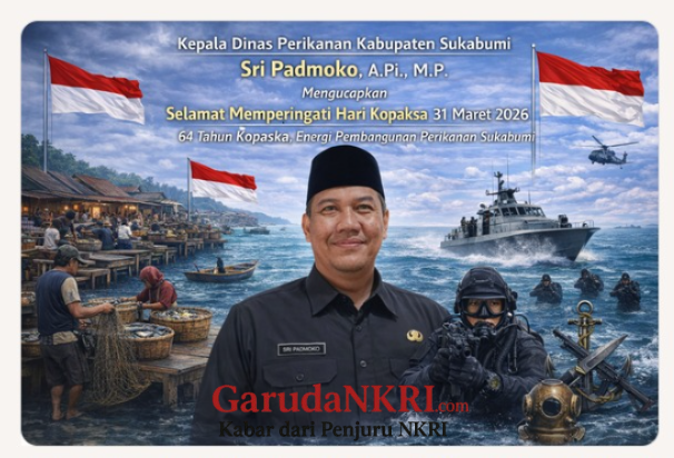 Sukabumi, 31 Maret 2026 – Kepala Dinas Perikanan Kabupaten Sukabumi, Sri Padmoko, menyampaikan ucapan selamat atas peringatan Hari Ulang Tahun ke-64 Komando Pasukan Katak (Kopaska). Momentum ini dipandang sebagai penghormatan atas dedikasi dan keberanian pasukan elit TNI AL yang senantiasa menjaga kedaulatan laut Indonesia.