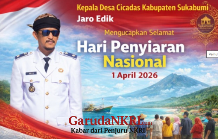 Sukabumi – 1 April 2026 Dalam rangka memperingati Hari Penyiaran Nasional, Kepala Desa Cicadas Kabupaten Sukabumi, Jaro Edik, menyampaikan ucapan resmi yang menekankan pentingnya peran penyiaran sebagai sarana pemersatu bangsa sekaligus penggerak pembangunan di berbagai bidang. Ia menilai bahwa penyiaran memiliki kekuatan untuk menyatukan masyarakat dari berbagai lapisan, baik di desa maupun di kota, serta menjadi jembatan informasi yang membangun kesadaran dan kesejahteraan bersama, ungkapnya.
