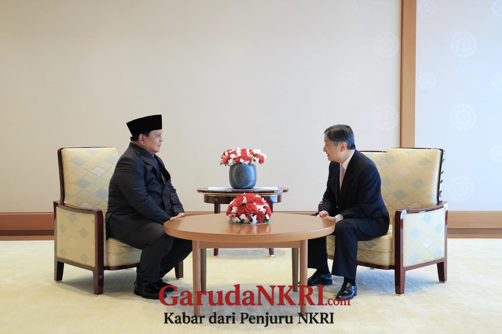 Pertemuan tersebut merupakan bagian dari rangkaian kunjungan resmi Prabowo ke Jepang. Setibanya di Istana Kekaisaran, Prabowo disambut langsung secara hangat oleh Kaisar Naruhito.